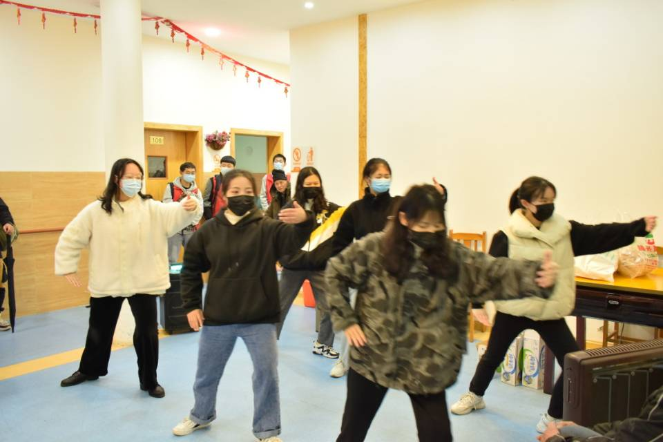 表演结束后,同学们开始一个个有序地把物资发送给老人,并慰问、祝福每一位老人。有些老人很健谈,拉着同学们就开始回忆往事;有些老人会打麻将,和两个会麻将的女生开始了游戏;有些老人较为寡言,但在同学们热情的招待中,老人也逐渐和同学们热络起来。有些家属恰好来看望老人,对志愿孝老的同学们也表示了感谢。
