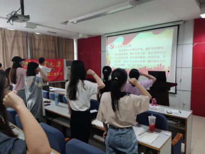 郑棉文书记带领新吸收的11名预备党员宣誓,支部党员、预备党员重温入党誓词。到会全体中共党员及预备党员面对鲜红的党旗,高举右手,声音洪亮地高诵入党誓词,庄严地发出誓言。