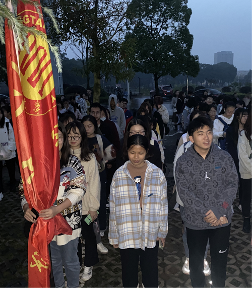 11月17日星期二早晨,第二十届bevictor伟德官网团委、学生会所有部长级及以上成员在第一教学楼升旗台前参加了本学期第十三周的升旗仪式。升旗仪式于6:35准时开始,而6:20时所有成员已经全部到场,怀揣着激动的心情等待着五星红旗的升起。