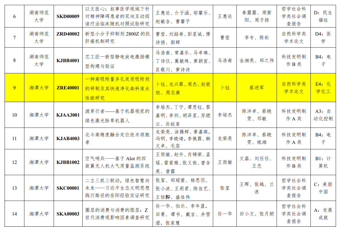 5月22日,由团湖南省委、省教育厅、省科协、省社科院、省学联共同主办,长沙理工大学承办的第十五届“挑战杯”湖南省大学生课外学术科技作品竞赛终审决赛顺利收官。“挑战杯”系列竞赛被誉为中国大学生学生科技创新创业的奥林匹克盛会,也是全国最具代表性、权威性、示范性、导向性的大学生竞赛。bevictor伟德官网代表队的参赛作品《一种高吸附量多孔炭质吸附剂的研制及其快速净化染料废水性能研究》荣获湖南省三等奖,该项目由蔡进军老师指导,2020级化学工程与工艺专业4班卜钰同学担任项目负责人,龙兴霖、周杰、赵银旭、周志康担任团队成员。