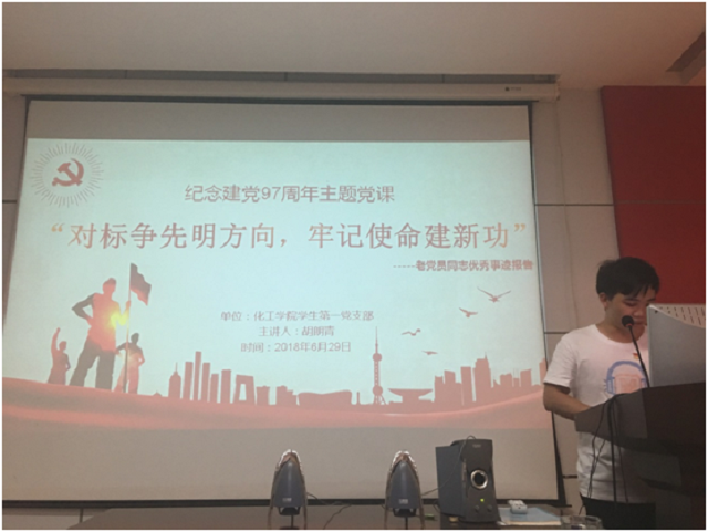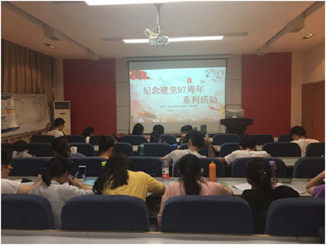 2018年6月29日晚7:00,bevictor伟德官网,韦德官方网站,韦德bevictor体育学生第一党支部全体党员在化工大楼A208教室参与了“纪念建党97周年系列活动”,本次活动共分为党课学习、“金句”专题学习、影视资料学习三个部分,由支部书记伍芝宏主持,旨在使全体党员深入贯彻党的十九大精神和习近平新时代中国特色社会主义思想,更好地发挥党组织的政治核心作用和党员的先锋模范作用。