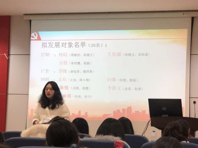 20名发展对象依次汇报自己在入党期间各方面的进步和思想转变情况,入党介绍人宣读意见后由支部同志对其提问或者提出指正建议。20名发展对象在发言中展现出强烈的入党志愿和坚定的信念,提问环节发言踊跃、讨论热烈、气氛融洽。