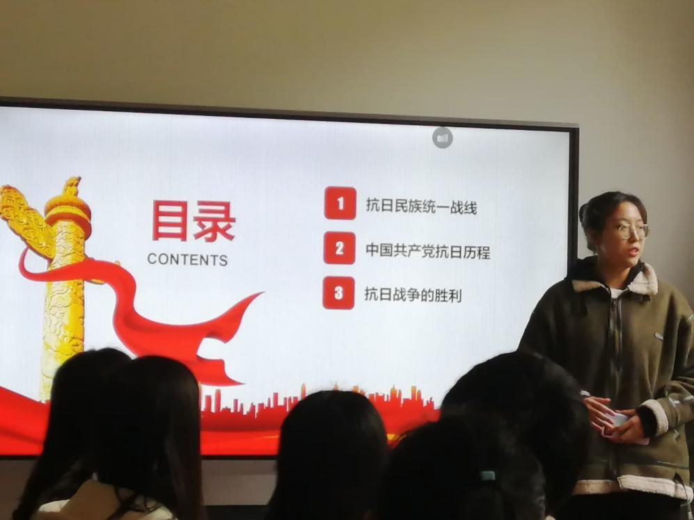 首先,发展对象张璐讲述了此次活动的背景是为了隆重庆祝中国共产党建党一百周年,本二党支部的交流内容围绕全民族抗日战争展开。