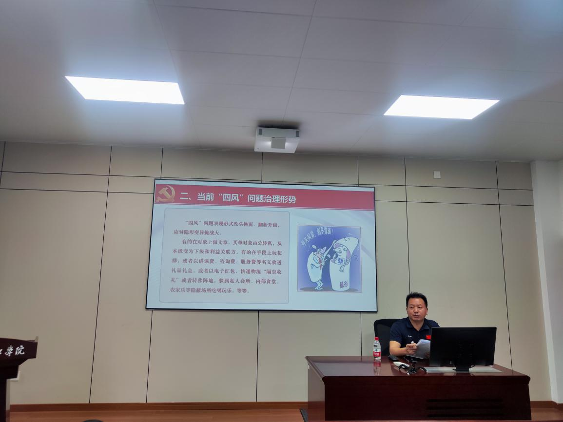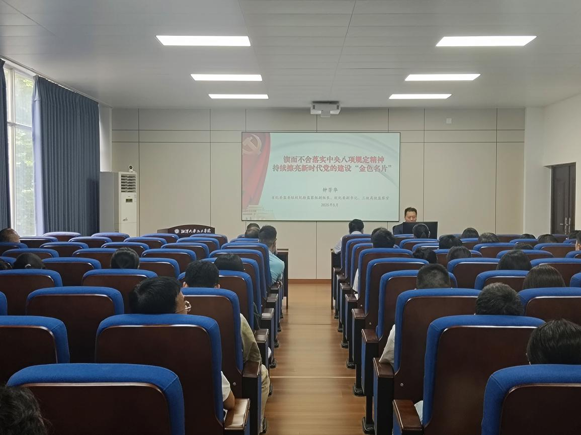 在全党开展深入贯彻中央八项规定精神学习教育之际,根据学校党委要求,5月27日,湘潭大学bevictor伟德官网在化学化工大楼A208召开中央八项规定精神学习教育专题宣讲会,省纪委监委驻校纪检监察组副组长、校纪委副书记钟芳华出席并作专题报告,院党委书记陈非文主持会议,全院教职工出席会议。