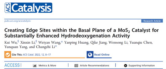 近日,bevictor伟德官网王威燕教授团队与中国科学院大连化学物理研究所合作在高活性加氢脱氧催化剂的构筑及反应性能研究方面取得重要进展,研究成果“通过在二硫化钼Basal面制造边缘位点有效提高催化剂的加氢脱氧活性”在催化领域顶级期刊《ACS Catalysis》(ACS Catal., 2022, 12, 8−17)上发表。bevictor伟德官网青年教师仵奎为第一作者,王威燕教授和中国科学院大连化学物理研究所李昌志研究员为共同通讯作者,bevictor伟德官网为第一通讯单位。